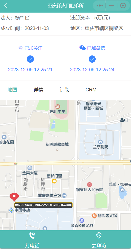 口腔行业AI应用案例,基于AI大模型以及企业工商大数据的B端拓客获客小程序,找关键人电话、微信、邮箱、地址等各种联系方式, 并集成CRM、ERP、企业本地知识库,辅助AI进行销售全生命周期管理,包括AI客服,AI输出方案,AI销售助手等,是一款拓客神器!销冠之路,添盈成就!